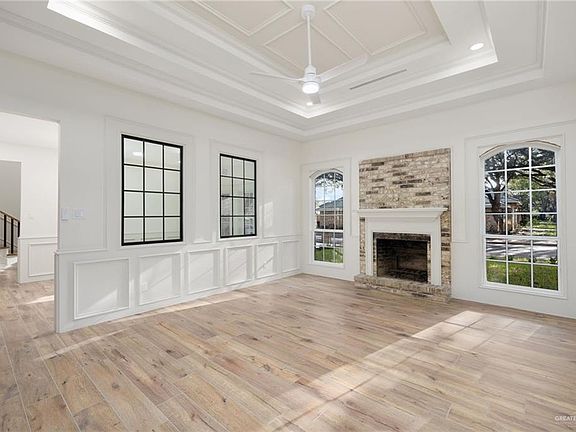This remarkable estate at Heritage Manor features three spacious bedrooms, four full bathrooms, and one half bath, complemented by a bonus room, two dining areas, and a living room with an open floor plan. It also includes a wood-burning fireplace, a three-car garage, and a carport for three additional vehicles, all fully fenced for privacy and beautifully landscaped. The heart of the home is a stunning kitchen, complete with a grand island, new appliances, and ample storage. The open floor plan and all the natural light allow the interiors to exude warmth and elegance, creating an inviting space. Every inch of this meticulously renovated residence showcases tastefully selected high-end finishes, modern design, and a refined sense of style, giving the home its beautiful modern charm. Enjoy the serene air-conditioned patio, perfect for relaxation and gatherings. Conveniently located near the McAllen 2nd St. Hike & Bike Trail, DHR Health, and various shopping and dining options.