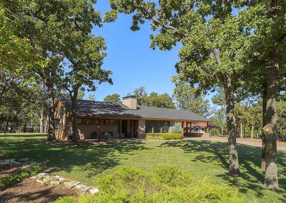 Welcome to this move-in-ready mid-century modern showpiece tucked on a quiet, tree-lined street in Cashion’s Wildwood… a neighborhood full of charm and character. Sitting on nearly half an acre, this updated 3-bed, 2-bath home blends timeless design with thoughtful modern touches. As you step inside, you’re greeted by a welcoming dining area anchored by a beautiful brick fireplace- a versatile space that could also serve as a cozy living area. When you walk around the corner, the home opens into the kitchen with warm cabinetry and stone countertops, and living room filled with natural light. Down the hall, you’ll see a full bathroom, laundry room and 3 bedrooms with the primary suite at the end. The spacious primary suite is a true retreat, offering two attached sitting areas perfect for a home office, nursery, workout room, or art studio, and its own private patio to the backyard.