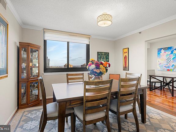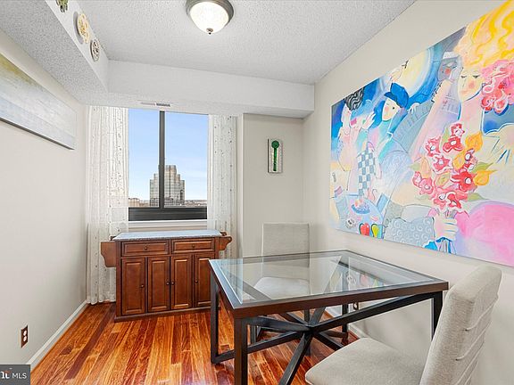 Welcome to an exquisite 22nd-floor residence in Skyline Square, where breathtaking panoramic views of the DC skyline—featuring iconic landmarks like the US Capitol, Washington Monument, and Old Town Masonic Temple—merge seamlessly with sophisticated living. This fully renovated, move-in-ready home radiates elegance with floor-to-ceiling windows flooding the living room with natural light, enhanced by energy-efficient, remote-controlled Hunter Douglas shades that create a cozy, festive ambiance perfect for holiday celebrations. The gourmet kitchen showcases solid cherry oak cabinets, sleek granite countertops, a matching backsplash, and SS kitchen appliances, complemented by ‘Santos Mahogany’ hardwood floors, a white marble foyer, and rich hardwood in the living and dining areas, all accentuated by the neutral “Alpaca” paint by Sherwin Williams. Two spa-inspired, fully remodeled bathrooms with modern showers and a double vanity in the primary suite elevate daily luxury, while a full-size washer and dryer in a dedicated laundry room ensure convenience. Enjoy exclusive amenities, including two dedicated garage spaces—a rare treasure—and access to the community’s EV charging station, nestled in Northern Virginia’s vibrant Bailey’s Crossroads, developed by Charles E. Smith in the 1970s. With seamless access to BRAC, Pentagon City, Amazon HQ2, Old Town Alexandria, downtown DC, I-395, I-495, and Reagan National Airport, this home delivers a luxurious, low-maintenance lifestyle, ready for you to embrace the holidays in unparalleled style!