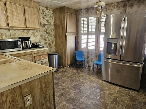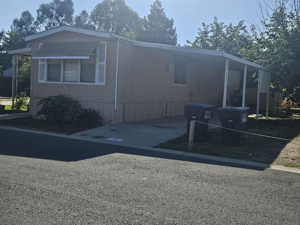 Located in Southwest Visalia, this two-bedroom, one-bath manufactured home blends comfort with accessibility. Inside, laminate flooring runs throughout, with ceiling fans in both bedrooms for year-round comfort. The open kitchen overlooks the living room, perfect for cooking or entertaining. (It needs a little bit of fixing up)