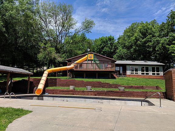 Waterfront property with the potential to be an entertainers dream! PRICED $60,000 UNDER assessed value!! Enjoy great views, a large in ground pool equipped with a water slide, and nearly 2 acres of land. Over 2900 finished square feet, 3 bedrooms, and 3 bathroom areas. A little TLC will go along way in this rare find only 20 minutes from CB.