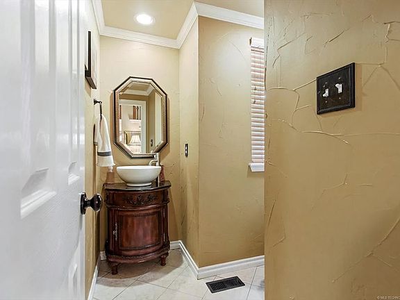 Located in the "Magic Mile" in the Jenks Southeast Schools area! This home features soaring ceilings, formal dining/living combo, beautiful wainscoting, crown molding, and custom woodwork. Hardwood floors throughout. Updated kitchen with granite countertops, stainless steel appliances, washer and dryer, freshly painted cabinets, 4 bedrooms, 3.5 bathrooms, 6 new burner cooktop, new microwave and fridge. Light and bright family room with mansard ceilings, large windows, and gas fireplace. Spacious master suite with tiled shower and tub.