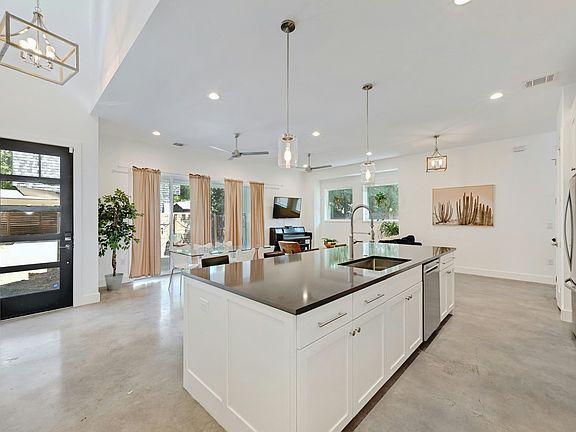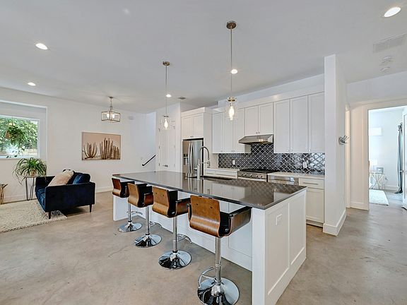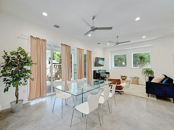 This sophisticated custom home offers an unbeatable combination of location, style, and investment value, nestled at the end of a quiet, private street with no thru traffic and ample parking. Enjoy WALKING to Austin's best dining, shopping, and entertainment hotspots just minutes from downtown, UT, Mueller, the Triangle, and more! Inside, the modern, open-concept layout features 3 spacious bedrooms, 3.5 bathrooms, and two living areas, including a main-level owner's suite. Each bedroom boasts its own luxurious en-suite bathroom, offering privacy and flexibility for guests or roommates and providing THREE equallly amazing private suites! Thoughtfully designed with cathedral ceilings, striking custom lighting and plumbing fixtures, and a mix of concrete and wood flooring NO carpet! The chef's kitchen shines with an oversized quartz island, eat-in bar, custom tile backsplash, stainless steel appliances including a gas range, and a generous walk-in pantry. Tons of natural light pours in through expansive picture windows and sliding glass doors, leading to a private backyard and an impressive covered outdoor living area perfect for entertaining or relaxing in style. Additional highlights include a tankless water heater, full-yard sprinkler system, and cedar privacy fencing. This is a rare opportunity to own a turn-key, design-forward home in one of Austin's most vibrant and connected neighborhoods. Living at 5506 Evans places you in the heart of a walkable neighborhood brimming with culture, cuisine, and community charm! Renter responsible for all utilities