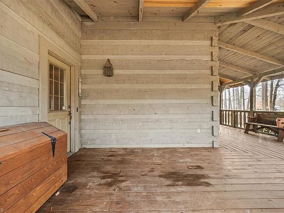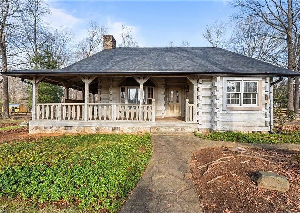 Stunning ONE owner log cabin, a rare and unique find w/ the most AMAZING wrap around front porch & stone finish around bottom. A true woodwork masterpiece. Right in High Point, not too far from Cedar Square Exit. NEW Roof & Gutters, HVAC 2023 & 2024. Home re-plumbed in 2024. Nestled on a 1 acre lot. Living room is beautiful w/ wood beams & stone fireplace is a showstopper & beautiful bay window. Kitchen is quaint & cute w/ small bar area w/ small pantry/closet & dining room area which leads to wrap around porch. Appliances in kitchen will convey. Laundry & 1/2 bath right off kitchen. Primary is on MAIN, with spacious bath w/ tub/shower combo. Stroll upstairs & find 2 large rooms w/ amazing closets. Hall bath has large soaking tub & built in cabinets. Offering plenty of parking & a circle driveway w/ split rail fence around the property. The stone exterior part of fireplace has a cooking area, time for some pizzas!