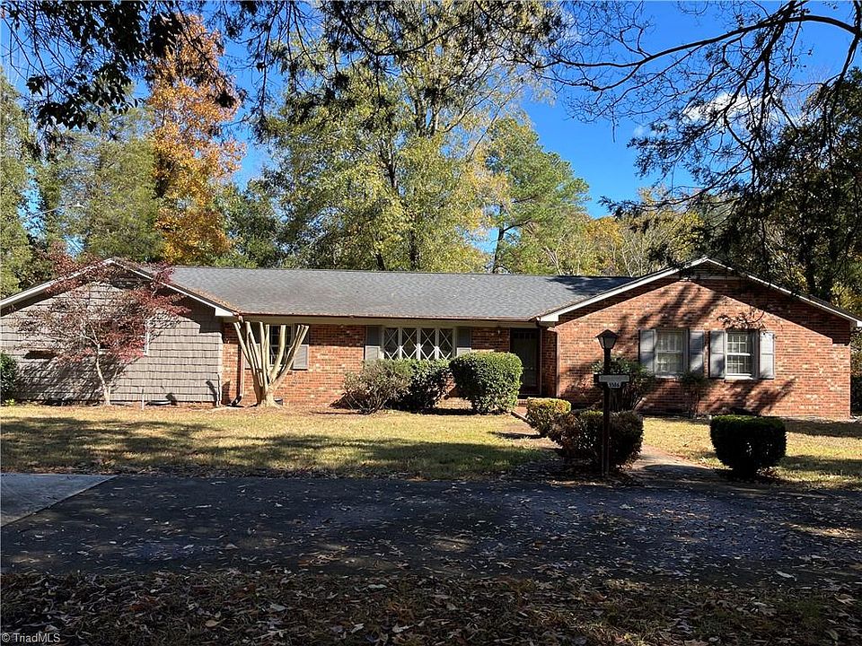 One level living in beautiful Sedgefield across form the Country Club Golf Course, next to the tennis courts, Hardwood flooring, beautiful living and dinning with bay window, Kitchen boast a large island, granite counters, gas cooktop, opens to great room with builtin shelving, brick wall and a cosy gas log fireplace, Huge hall walk in closet storage galore! Spacious Primary suite opens to private sunroom and patio. Detached building is plumbed for kitchen & bath, so many possibilities, needs roof & wood repair, as is.