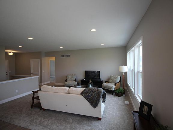 Quality built by Maier Homes long time experienced builder. Landscape, yard and underground sprinkling is in. Great open floor plan with 9' ceilings. Beautiful open kitchen with center isle. $2,600 Whirlpool stainless steel appliance allowance. MBR suite with private bath & walk in closet. Lots of expansion possibilites with walkout & 4 daylight windows. Roughed in bath, could have Fr & 2 more BRS. Large front porch. Located at end of cul de sac. yard and landscaping in. Room desc: FOYER, GR, KIT W/ DA, MBR SUITE, 2 BR, BA, MFU, MUDROOM, 1/2 BA, DN: WALKOUT POTENTIAL FR, 2BR, BA, LARGE STORAGE ROOM