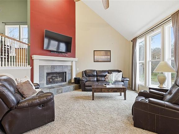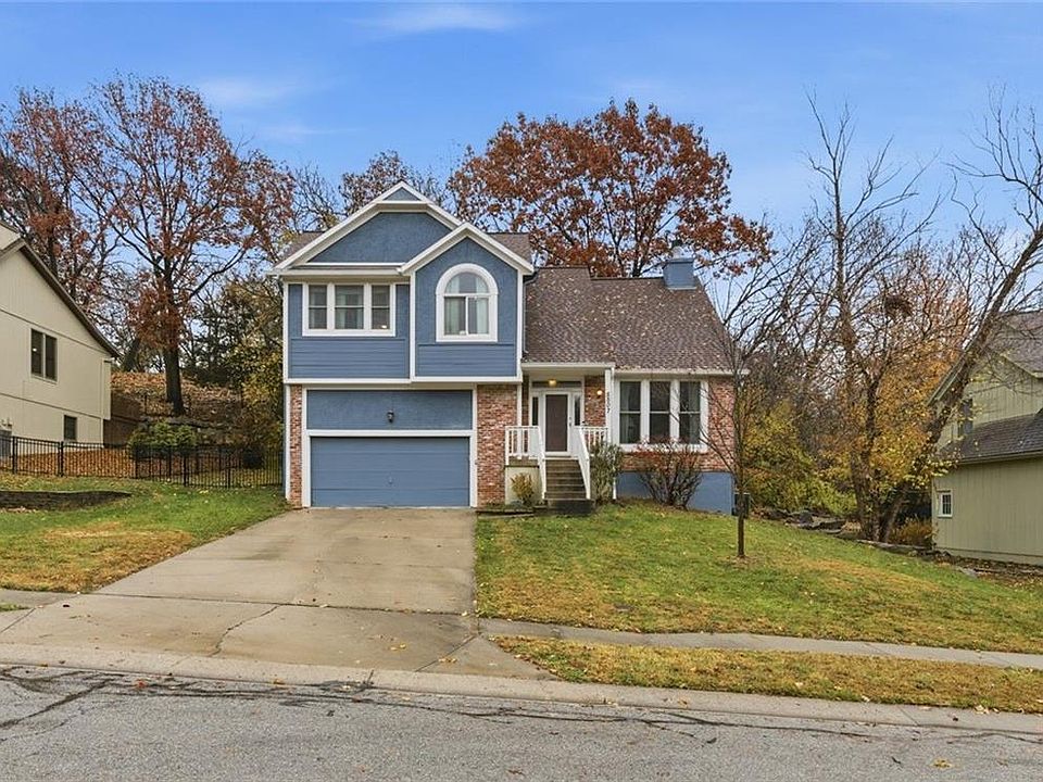 BACK ON MARKET -- NO FAULT Of SELLERS! Wind through the forested drive along Pflumm Road, where manicured lawns & well-kept homes lead you to Pflumm Woods—a picturesque Shawnee subdivision known for its peaceful charm & park-like setting. This beautiful home backs to a lush forest, offering privacy, shade, & year-round natural views. Step up to the inviting front entry & through the storm door into a hardwood floor foyer. To the right, the vaulted great room welcomes you with soft carpeting, a corner fireplace with a tile surround, & a large modern ceiling fan accentuating the soaring ceiling height. Just up the short staircase, the light-filled breakfast area opens to a thoughtfully designed kitchen with hardwood floors, rich stained cabinetry, a pantry, & a peninsula for added workspace & storage. Stainless steel appliances—including a gas stove—complete the space, while sliding doors open to a deck overlooking the treed backyard & a lower patio below. It’s the perfect spot for your morning coffee or an evening spent listening to the sounds of nature. Down the hall, two comfortable bedrooms share a beautifully updated bath featuring slate tile & a shower/tub combination. Upstairs, the private primary suite is a true retreat, complete with a sitting area, luxury vinyl plank flooring, & a stepped, vaulted ceiling with a ceiling fan. The spa-inspired ensuite bath boasts a double quartz vanity, an oversized soaking tub that opens to a tiled shower with dual showerheads, & a spacious walk-in closet conveniently located within the bathroom. On the lower level, you’ll find a cozy family room with a decorative ledge, a daylight bedroom, a full bath with tile flooring, & a laundry room. The interior entry to the garage is also located here for added convenience. Nestled among the rolling hills & wooded beauty of Shawnee and served by award-winning Shawnee Mission schools, this home perfectly blends nature, comfort, & everyday functionality.