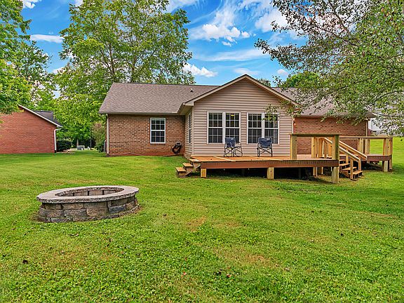 LOTS TO LOVE HERE!!! Vaulted BRICK RANCH with 3 Bedrooms & 2 Baths perched on a LEVEL CUL-DE-SAC that backs to a BABBLING CREEK! Covered Porch! Tiled SUNROOM that opens up to EXTENSIVE DECKING! BRICK FIREPIT! Kitchen with Tile, Stainless Appliances, Granite Counters & Island with Seating! Family Room with Laminate Wood Floors & Gas Fireplace with TV Nook Above! New Rubber Flooring in Garage! New Exterior Lighting!