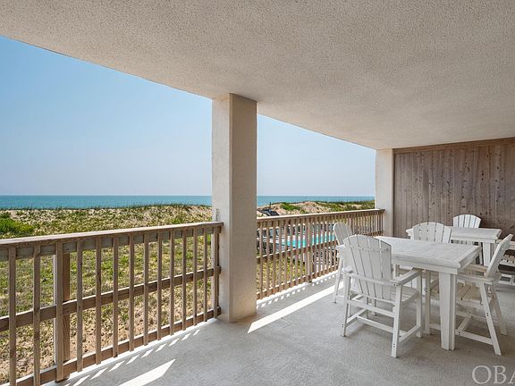 This Heron Cove flat offers fabulous ocean views and the best of beach living! The location could not be better on one of the best sections of beach on the Outer Banks, and within easy walking access to great restaurants, golf, shopping and more! Heron Cove is one of the most sought after developments on the Outer Banks. With quality construction, an elevator, and excellent management, Heron Cove offers owners outstanding value and peace of mind. Covered parking, generous ground floor storage for bikes and beach equipment, a large community swimming pool and private beach access 600 feet from the nearest public access are some of the reasons why these rarely become available. The roof is less than fifteen years old and the siding is less than five. The concrete construction of these building is solid and feels more substantial than others. Within a community of winners, this particular flat stands out for its ocean views and updates! The furnishings are fresh and with updates throughout, this unit is turn-key! The vinyl plank flooring is crisp and contemporary. Each of the baths has beautiful cabinetry and stone tops. The kitchen is warm and functional with granite and black appliances. The recently replaced slider doors frame beautiful ocean views and let in plenty of natural light. The 10 x 28 covered deck is well appointed with quality outdoor furniture and has two seating areas from which to take in the expansive water views. Please note that you can easily see the pool, but that it is not just below so that tranquility is maintained even when others are frolicking there. My favorite aspect of this condo is the generous floor plan. Because there are no stairs and the ocean views are emphasized in the living area and primary bedroom, it feels bigger than its 1700 square feet! The open concept living room/dining room has abundant space for relaxing, a wet bar, and extra card table. When you walk in after rounding the tastefully stained curved wall, you see the ocean right away. The primary bedroom is huge with an extra seating area or office space and a very generous bath with double vanities, a soaking tub, and beautiful tiled shower. One other bedroom has plenty of space for two bunk beds and the other bedroom has a queen bed with plenty of room to spare. I love that you can park underneath, take the elevator get inside with no stairs and stay dry and out of the sun. This unit continues to excel as an investment! It has achieved over $72k in rents for 2023. Detailed expenses are available. Bookings are currently withheld for 2024 so that the new owners will have priority for their personal use. The condo fee includes insurance for the structure, pool and all of the amenities, basic cable and internet, water and sewer. Hurry...this will sell quickly!