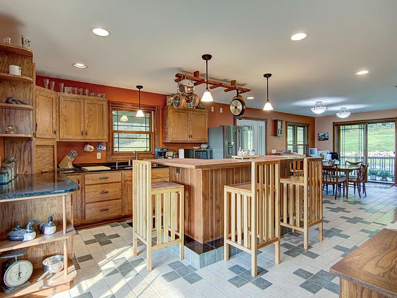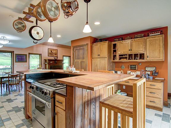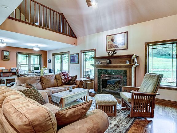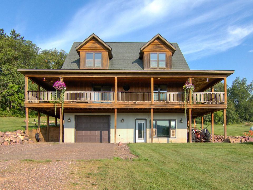 29.7 Acres and beautiful home located 7 miles West of Chippewa Falls. Home has a picturesque wrap around porch, stunning open concept kitchen, dining, and living room area with fireplace. Main level master suite with access to the porch. Amazing views of the countryside, tuck under garage, and finished basement with in floor heat. Acreage consists of rolling hay fields, secluded spots for hunting, and frontage on Elk Creek for great trout fishing. This is a wonderful hobby farm with endless potential, country living at its finest!
