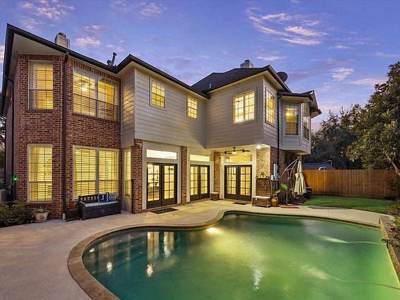 Look no further! This beautifully renovated brick traditional is pristine. Professional design details throughout. Immaculately landscaped. SEE the attached Floor Plan (4/4/1)- a wonderful family home as well as great for entertaining. Convenient location on a quiet street just a few min from Condit Elem, Bellaire Hi & Bellaire City amenities such as the library, park, pool and rec center. The delightful, heated pool has an attached cabana with full bath- guest space possible. Rich traditional hardwoods throughout with carpet in the bedrooms. The very spacious primary suite with plantation shutters has a big separate sitting area, a well-appointed bath and separate roomy closets. The combined Kitchen and Family Room have two sets of French doors to join the pool & patio area for welcoming a crowd. See photo captions for more details. Never Flooded.