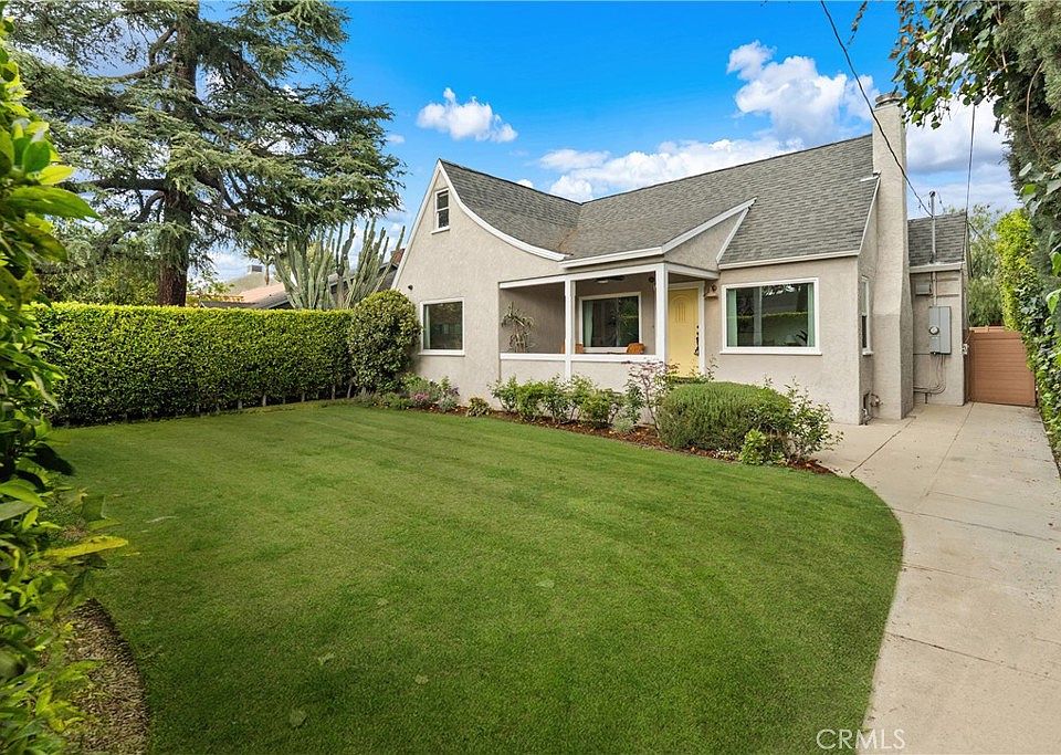 This charming country cottage in Sherman Oaks was built by the original owners in 1928, though it has been thoughtfully renovated to preserve its original character while seamlessly blending modern upgrades. Upon entering through the gated front entrance, you're greeted by a lush, expansive lawn and garden, leading to a welcoming covered front porch—perfect for relaxing and enjoying the serene surroundings.