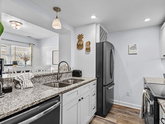 Best Buy at the Beach on the Golden Mile! Welcome to Porcher Villas, a charming and rarely available townhome-style condo community in the heart of Myrtle Beach—just steps from the beach! This fully furnished 2-bedroom, 1.5-bath villa offers the perfect blend of comfort and coastal convenience. The two-story layout features luxury vinyl plank flooring, granite countertops, sleek black stainless steel appliances, a breakfast bar, a dining area/flex room and a spacious living room. A convenient powder room is also located on the first floor, while upstairs you'll find two generously sized bedrooms and a full bath. Recent updates include a new hot water heater, new toilets, new mattresses, new TVs in both bedrooms, and an all-new sewage line for peace of mind. Step outside to your private fenced courtyard with a patio and deck area—plus attached outdoor storage with washer and dryer. Porcher Villas is an intimate community with only 15 units and features an outdoor pool just a few steps from your front door. Whether you're looking for a primary residence, beach getaway, or income-producing property, this one checks all the boxes!