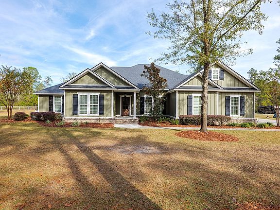 Absolutely stunning 4 Bedroom 3 Bath home located in Hahira off Snake Nation Rd. This home has everything you need for that perfect getaway feel but minutes from town. Double gated entry with large circular driveway and three car garage. The interior of this home is gorgeous with so many upgrades and extras included. The living room has gas fireplace, hardwood floors, custom bookshelves and is open to the Kitchen. Plenty of counter space and cabinets, stainless appliances with eat in breakfast area and formal dining room. Very spacious master suite with dual sinks, large jetted tub, tile shower and huge closet with center island. Kids room are great size with jack and jill bath in between. Central bathroom located just off the living room near front bedroom with vaulted ceiling. Back yard Oasis with huge back deck overlooking POOL. Outdoor grilling area with sink, fridge and cabinets. Enjoy these cool nights by the custom firepit area!! House also comes with interior and exterior zoned speaker system and BACK UP GENERATOR!! If you like toys, campers and need a place to put them or just need an area to work, the rear of the property has 4 separate shelters ranging in size. One large shelter/shop with lean to sides and an awesome "Man Cave". The main shelter has 70'x12 sides and 30x24 covered section with concrete. The man cave is almost 1000 SF with Bar area, fridge, oven, icemaker exercise room, full bathroom. Three other shelters 25x40, 60x12 and 25x40. If you work from home this is an ideal property to have your home office and everything is completely out of sight from the home. Property is also completely fenced. The adjacent properties are for sale as well so you could acquire up to 20 additional acres. Set up a time to come see this property!
