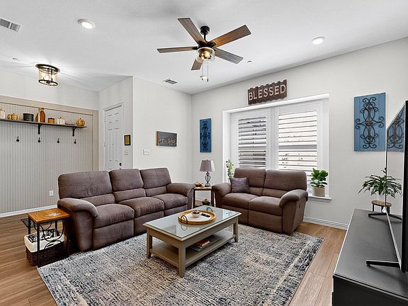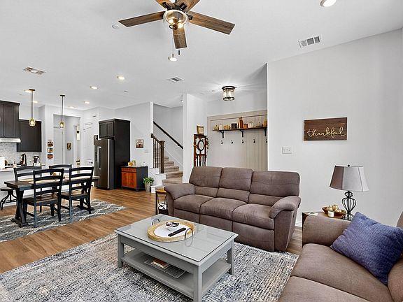 Welcome to the Station; an awesome mixed-use development district near Firewheel Mall where residents have a variety of modern conveniences within walking distance; shopping, dining, hospital and Heritage Park. This Energy Star Townhome has been tastefully decorated and features some neat customizations. Open concept living and kitchen greet your arrival with a custom hanging rack for coats in entry. Spacious kitchen with quartz counter tops, stainless steel appliances, gas cooktop, 42 inch cabinets, subway tile backsplash and huge kitchen work island with bar top seating. Spacious bedrooms upstairs with second living area ideally situated in the middle. Primary bedroom is situated separate from guest bedrooms and features an ensuite bath with dual vanities, oversized shower and walk in closet. Utility room has been upgraded with built in cabinets and is also upstairs near the bedrooms. Spacious rooms throughout with lots of light filled windows. Epoxy floored garage and more! Refrigerator and upstairs sofa convey to buyer!