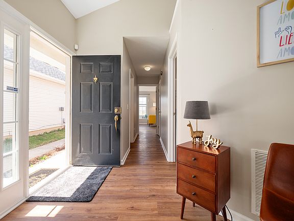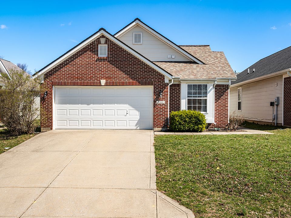 This freshly updated 2 Bedroom, 2 Bath ranch home is now available to be yours in the popular Benjamin Square neighborhood! When approaching the home, you'll first appreciate that it sits off on a more private section of the road enabling you to have a more tranquil living experience and extra privacy. Upon entering the home, you'll be greeted by the light, bright and airy feel compliments of the vaulted ceilings and open floor plan. With new flooring and fresh neutral paint throughout much of the home, your move-in experience will be a breeze! The Kitchen will come complete with all appliances and includes plenty of storage space with white cabinets and a pantry. The Dining Area provides easy access to your backyard through the sliding patio door which will be great this summer for outdoor grilling and/or dining. The Primary Bedroom, also with a vaulted ceiling, includes a walk-in closet and ensuite complete with double sinks, garden tub and separate shower. The Laundry Room is a great mud room space between the garage and the rest of the house and will include the washer and dryer. With easy access to interstates, Fort Harrison State Park, scenic trails, schools, shopping, dining and just a short drive to Downtown Indy, this property is a must see!
