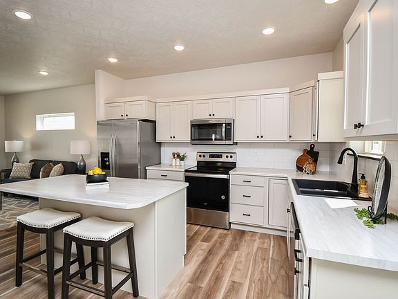 Center islandLarge family roomDrop zoneCovered deckDurable lvp flooringStylish finishesSpacious open layout