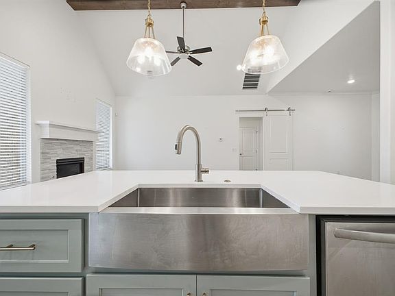 Stunning Home in The Canyons With Whole House Generator, Storm Shelter & So Much More! Welcome to this beautifully designed 4-bedroom, 3-bathroom home offering 2,300 sq. ft. Perfectly located in The Canyons off Sara Road, this home combines style, comfort, and convenience—just 10 minutes from downtown Oklahoma City, the Outlet Shops, and Bricktown, with quick access to the Kilpatrick Turnpike. Step inside to a spacious living room with soaring cathedral ceilings, a cozy fireplace, and over-sized windows that flood the home with natural light. The chef’s kitchen features wood-look tile floors, a modern tile back-splash, stainless steel appliances, a center island, cabinets extending to the ceiling, and a corner pantry for ample storage. The primary suite is a true retreat with a spa-like bathroom boasting double vanities, a whirlpool tub, a walk-in shower, and a huge walk-in closet. Upstairs, enjoy the versatility of a bonus room, perfect for a playroom, office, or media space. Outdoor living is a dream here! Relax on the covered back porch with a wood-burning fireplace, TV hookup, and a gas line—ideal for year-round entertaining. The backyard is fully fenced, and the front yard beautifully landscaped with flowerbeds accented by extra rock features and a French drain, while the sprinkler system covers the entire yard, front and back. Additional highlights include: 3-car garage with storm shelter Blinds throughout the home Tank-less water heater Whole-house generator for peace of mind Rain Gutters Bonus Room French Drain