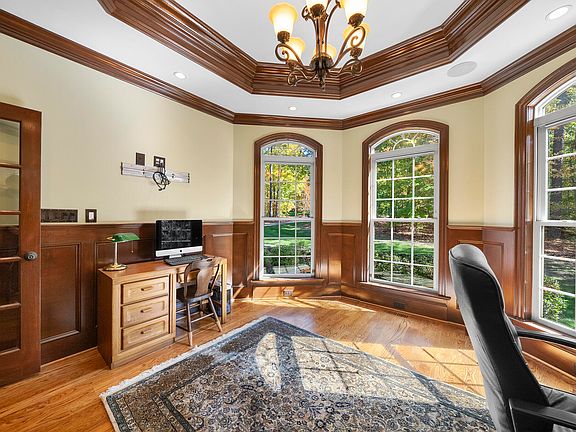 Experience luxury living and unmatched privacy in this custom-built Raleigh estate nestled on nearly two acres of tree-lined serenity. A long drive leads to an elegant home featuring a 3-car garage, with a dedicated EV charger, plus an oversized attached RV/boat bay, perfect for extra vehicles or storage or your very own golf simulator to enjoy! Inside, the thoughtfully designed layout offers a first-floor primary suite with a spa-inspired bath showcasing a dual master shower with rainfall and body sprayers, and an additional first-floor guest suite for effortless convenience. The chef's kitchen impresses with soft-close cabinetry, granite countertops, a walk-in pantry, and coffered ceilings that flow into the formal dining room. Enjoy multiple spaces for work and play, including two expansive bonus/media rooms and abundant walk-in attic storage. Relax outdoors on the screened porch with fireplace and TV mount, overlooking your private wooded backdrop. Every detail has been meticulously considered, from custom wood shutters and a whole-home sound system, to surveillance cameras, a security system, and a completely sealed crawlspace. This home also features a central vacuum. Luxury, privacy, and functionality unite in this exceptional Raleigh property, an ideal retreat just minutes from city conveniences.