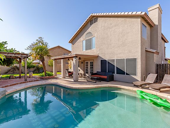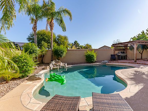 The beautifully designed backyard patio surrounds the home's outdoor pool, providing guests with a serene oasis in the desert. The patio also includes comfortable furniture and a professional gas grill. Whether you're looking to relax outside and enjoy the crystal-clear night sky or have fun in the pool with your family, the Piute Palace features several cozy spots to unwind outside. From the dining table to adjustable sunbathing seats, it's not a question of if you will relax, but where you'll choose to do it. The home is conveniently located just fifteen minutes from various spring training facilities and a short distance from shopping and dining!