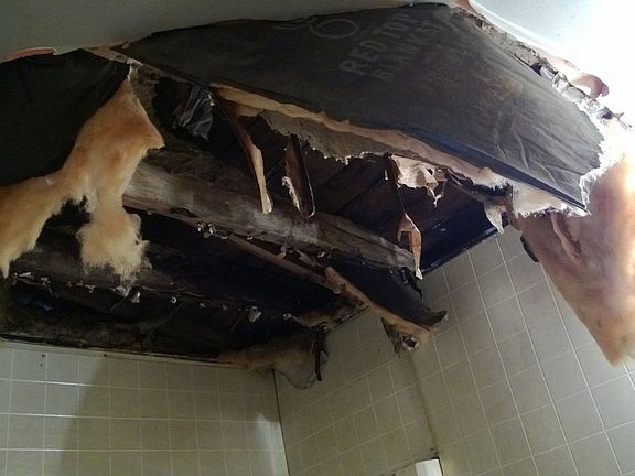 Exterior Features:Curb appeal is good. Siding is in fair condition. Roof is shingle type in need of repair. attached garage. Interior Features:This is a 2 bed 1 bath house with 582 sq ft. Flooring is carpet/wood and in poor condition. The kitchen has sink, cabinets, dishwasher and refrigerator present. Only mechanics found is the furnace. Ceiling damage indicates roof issues.