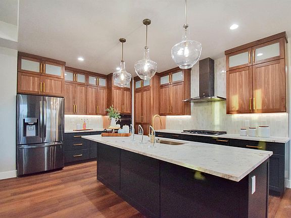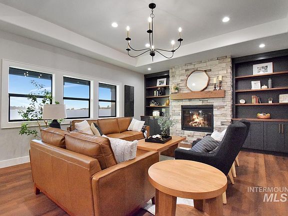 Welcome to this stunning new construction home, an award-winning gem that won the Mini Cassia Parade of Homes for Best Landscaping, Curb Appeal, and Overall Judges' Choice in Tier 2. With 2,165 sq ft, this exceptional residence features four spacious bedrooms and two elegant bathrooms. The open-concept living area, complete with a cozy gas fireplace, flows seamlessly into a chef’s kitchen adorned with rich black walnut cabinets and a hidden butler's pantry. Enjoy modern comforts like a tankless water heater, a 90% efficient furnace, and soundproof interior insulation. The three-car garage offers ample storage, while the fully landscaped yard is perfect for outdoor gatherings, featuring an outdoor gas line for BBQs. With durable Hardie board siding and enchanting gemstone lighting, this home beautifully combines style and functionality. Don’t miss your chance to own this award-winning masterpiece—schedule a showing today!