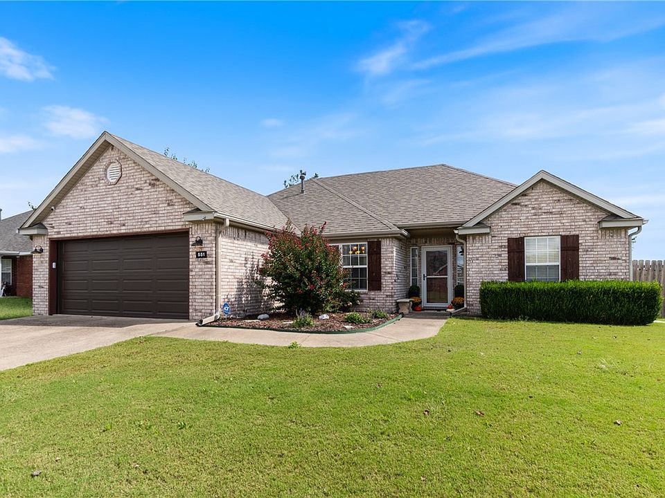 Beautiful ¾ brick home featuring split floor plan and aesthetically pleasing updates throughout. Step inside to find brand-new engineered hardwood flooring, fresh bright paint, new granite countertops, and a sleek glass-top range in the kitchen. The refrigerator, washer, and dryer all convey, making this home move-in ready. You will enjoy the way the soaring tray ceilings, wood blinds, and natural light bring life to this elegant, yet casual design. Recent improvements include a new garage door and motor for added peace of mind. With style, function, and comfort combined, this home is ready to welcome its next owners. Close to Bentonville West, Centerton Gamble Elementary and Lifeway Christian School. Only 5.5 miles to Walmart Headquarters and 7 miles from Crystal Bridges Museum. Open field to the back of property and fish hatchery to the south makes this feel rural while close to amenities.