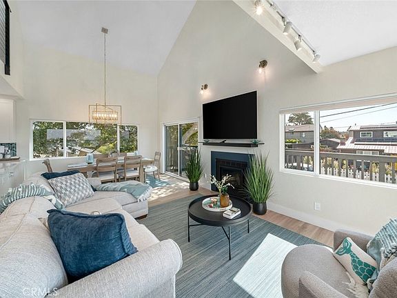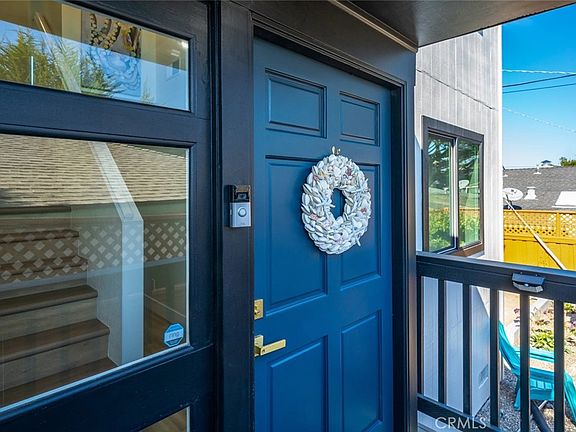 Proudly perched among the trees at the highest point on Park Hill, this beautifully renovated 3-bedroom, 3-bath Cambria home showcases fantastic ocean views! A striking foyer guides you to a fully remodeled open-concept layout with vaulted ceilings, warm tones, and wide-plank flooring that's fully furnished in a relaxing contemporary style . Gaze out the new Milgard windows that enhance the brightness of the fireplace-warmed living area and chandelier-lit dining corner, while glass sliders open to an extensive balcony. Whip up recipes in the entertainer’s kitchen with its brand-new appliances, shaker-style cabinetry, honeycomb backsplash, and quartz countertops.