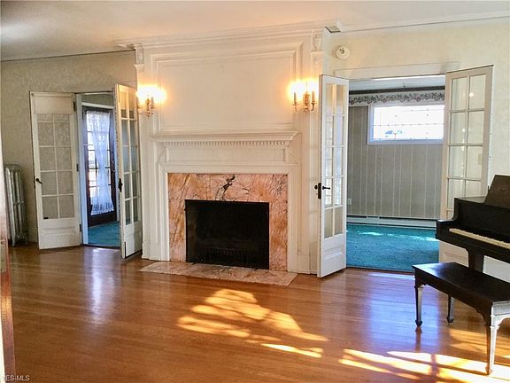 Located in Ravenna's historic district, this home is a showstopper. Step inside and one is greeted by a beautiful open stair case, a wide foyer, with rooms at both ends with French doors. The great room features a beautiful fireplace with dentil moulding, marble surround, and many other woodworking details. A sun room is accessed by two more sets of French doors that flank the fireplace. The kitchen is a dream come true for an old house lover, as the cabinets are the original built ins and are period appropriate. Also on the first floor, one will find a bright and sunny dining room with adjoining full bathroom. There is a lovely formal room off the kitchen with a small fireplace and a built in cabinet. Tucked beneath the steps in one of the passageways, is the sweetest little half bath with fabulous 1940s wallpaper! The staircases in this home are magnificent. There is the main staircase that is open and elaborate, but once upstairs, one can see the back stairway that is built beside it. The railings around it are gorgeous and the effect is spectacular. The upstairs bedrooms are large and light filled with plenty of closets. There is also a small bonus room , perfect for an office. All the bathrooms have original or period appropriate ceramic floors, like basket weave tile. Main bath is entirely original. This home must be seen to fully appreciate and feel the graciousness that this property offers. Homes like this can never be replaced! Own a piece of history!
