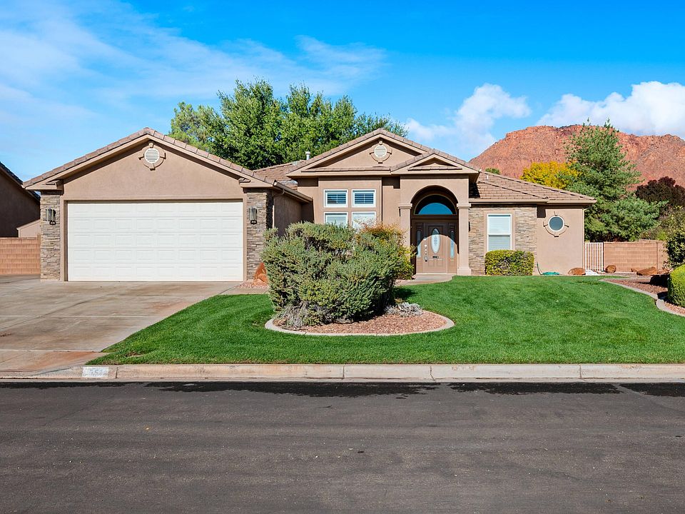 Set on a corner lot with a clear line to Ivins' Red Rock backdrop, this single-level home keeps everyday living simple and comfortable. The layout gives you easy flow between the kitchen, living area, and backyard, with plenty of natural light throughout.