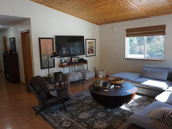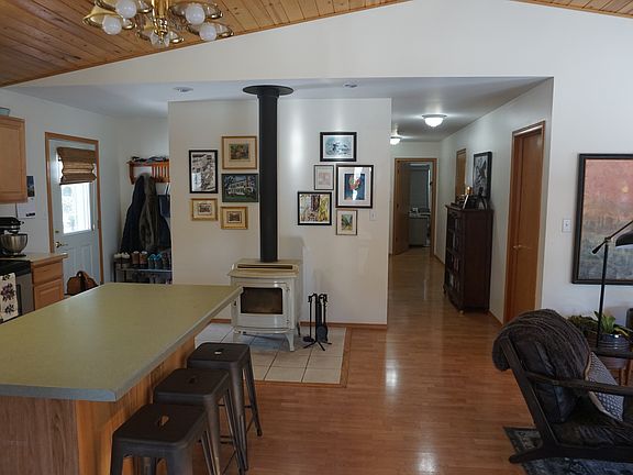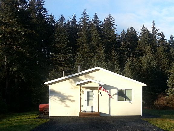 Welcome to your Alaskan oasis. This airy house boasts an open floor plan and has rustic touches with a cozy woodland feel. Access from your backyard woods one of the most popular and beautiful hikes in town which ends at the seaside Spruce Cape cliffs. Your backyard woods are also great for gathering firewood and summer blueberry/salmonberry picking! This energy efficient home has large windows which flood the house with light all year around. Cozy up in your large living room next to your wood-burning stove which heats the whole house and keeps utilities low in the winter. 1456 sq.ft., 3 bedrooms, 2 bathrooms, laundry/utility room with washer and dryer included, central heating, vaulted ceilings, and open kitchen/living room. The bedrooms are roomy with plenty of space. Wide hallways and plenty of storage. 8 x 16 ft. built in wood shed and a second utilities shed allows for plenty of storage for all your Alaskan toys. Spacious 14,000 square foot yard allows room to build a garage. Located in the quiet and desirable Spruce Cape neighborhood on a paved cul-de-sac within walking distance of Mission beach. Pond located at the beginning of cul-de-sac makes for great walks and ice-skating in the winter. Nuzzled in Kodiak’s friendliest and safest community - welcome home!