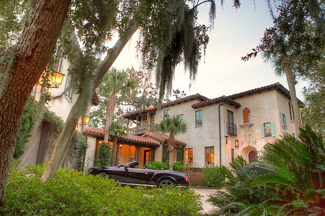 Mediterranean Summerour villa on the lagoon in Ocean Forest. Ancient Oak trees were preserved to make you feel this home has always been part of the landscape. The main floor master retreat includes an office or den, large bath, spacious closet and supreme view. Open kitchen family room is beautifully appointed-the best appliances,and expansive window walls to bring the view inside. The living room/dining room has a fireplace, pecky cypress beamed ceiling and opens to a screen porch on the view. Two more bedrooms with baths, an entertainment room and a nice size veranda are upstairs. The guest house above the 3 car garage offers 2 additional bedrooms and baths, a den, great views and such privacy. Atlanta Homes and Lifestyle magacize called this home The Prettiest Cottage In Georgia.