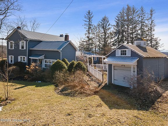 Nestled on over 31 acres of pristine Schoharie County countryside, this historic 1800 5-bed, 2-bath Colonial has 2800sqft of living space. Lovingly owned & maintained by the same family for the past 7 decades, this grand home features an in-law apartment w/ separate entrance, large eat-in kitchen, cozy living room w/ floor-to-ceiling brick gas fireplace, formal family room & formal dining room. A covered front porch overlooks the beautiful pond & pastures while a back patio w/ a pergola offers room to entertain family or just enjoy the views of mountains & wildlife. An attached 2-car garage, detached 1-car garage w/ lean-to & shed offer an abundance of storage. An old milk house w/ wrap-around deck has she-shed potential. Halfway between Albany and Oneonta. Welcome home!