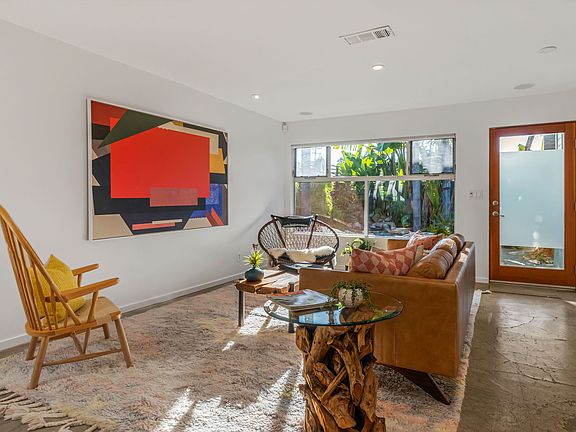 You'll love the mid-century vibe of this 4 bedroom compound, just blocks from Rose Avenue and Abbot Kinney - in the middle of it all! Tucked behind high walls with mature tropical landscaping, you'll feel nestled and private, while also enjoying tons of natural light and multiple outdoor spaces for relaxing or entertaining. A beautiful river rock water feature helps to soothe the soul and the built in fire pit takes the chill off of these autumn evenings. Inside, all four sizable bedrooms boast lots of windows and no adjoining walls! The remodeled kitchen has birch cabinetry, ample counter space and stainless appliances. The step-down living room with polished concrete floors and abundant skylights opens onto the front patio for great entertaining flow. A great home for a growing family, or for those who value their privacy.