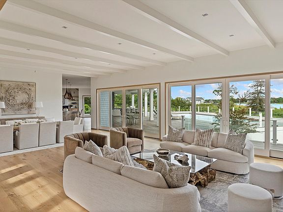 Discover the ultimate in luxury living on 3 private acres with 225 feet of bulkhead along the serene Quantuck Creek in Quiogue. This stunning new construction estate offers unparalleled privacy, panoramic open creek views, and resort-style amenities crafted for both relaxation and entertaining. Step through a beautiful white oak foyer into a home rich with craftsmanship, featuring custom trim work, curated finishes, and a thoughtfully designed open layout. At the heart of the home is an oversized chef's kitchen with marble countertops, a walk-in pantry, and an inviting great room that flows effortlessly into two elegant living areas, each with its own fireplace. The first floor includes two en suite bedrooms, two private offices, a laundry room, and two stylish half baths with marble countertops, all connected to a radiant-heated three-car garage. Upstairs, a dramatic balcony opens to a light-filled family room. The private primary suite wing offers a luxurious retreat with a sitting room, expansive walk-in closet, spa-like marble bath, and a covered veranda with stunning views of Quantuck Creek. Every detail of this home was thoughtfully curated for elevated living. With eight spacious bedrooms, including a private guest suite and junior primary, there's room for everyone to feel at home. The residence features nine full bathrooms and three elegant half baths, including a dedicated pool bath for effortless outdoor entertaining. Three well-appointed laundry rooms with a total of five washers and dryers offer everyday ease and efficiency. Sophisticated materials are found throughout: marble countertops in the kitchen, primary suite, junior suite, and powder rooms, and quartz finishes in the secondary bedrooms. Comfort meets innovation with hydronic radiant floor heating in the primary suite and garage. Smart home features include a full Sonos sound system, Lutron RA-3 smart lighting, and pre-wiring for automated shades in all bedrooms. Outdoors, enjoy a covered deck with a built-in BBQ and bar, an outdoor fireplace, and a stunning pool and spa, all overlooking the peaceful waters of Quantuck Creek. A home gym, playroom, and flexible living spaces round out this exceptional residence. 551 Main Street is more than a home, it's a lifestyle. A rare opportunity to own a modern waterfront estate in one of the Hamptons' most coveted enclaves