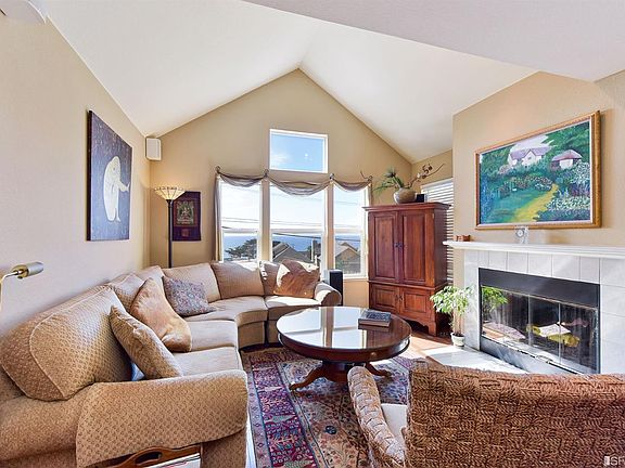 Fantastic, newer construction, detached single family home with beautiful ocean views, wonderful light and great floor plan: formal dining room off kitchen flows into a living room with cozy fireplace. Large, modern, eat-in kitchen with plentiful cabinets and granite counter tops, stainless steel appliances and a sliding glass door to private rear yard. Watch whales on deck off dining area and enjoy the ocean views. A full bathroom and a bedroom, or the perfect office, with serene woodland outlooks complete this level. Upper level has two large bedrooms both with en-suite bathrooms. Views to Farallon Islands & Point Reyes from master bedroom! Two car sxs parking + laundry on ground level. Easy San Francisco and Peninsula/South Bay access.