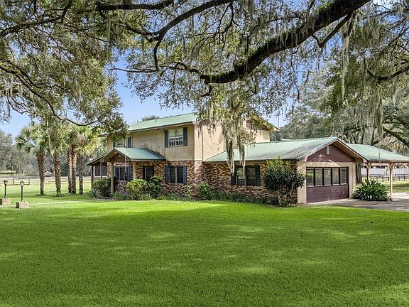 One or more photo(s) has been virtually staged. Welcome to an elite equestrian estate in the heart of Central Florida’s renowned horse country, offering a rare opportunity for trainers, breeders, and investors seeking a large-scale facility with exceptional income potential. Spanning over 72 fully fenced acres, this legacy property features a 5/8-mile irrigated dirt track, 80, 12’X12’ stalls and 4, 12’X16’ stalls across three concrete block barns, equine swimming pool, covered eurociser, two covered hot walkers, and 17 four-board pastures and paddocks. Designed for multiple disciplines, including but not limited to training, conditioning, breeding, racing, jumping/hunters, and dressage. The property’s infrastructure supports professional operations of any scale. The barns are thoughtfully equipped with LED lighting, tack and feed rooms, office space, and restroom, while mature oak trees provide shade throughout the grounds. Additional amenities include a maintenance building, three wells, multiple wash bays, and three RV hookups with a separate septic system for on-site accommodations. At the center sits a 2,738 sq.ft., two-story residence with 3 bedrooms, 2.5 baths, a screened porch, and a grand wood-burning fireplace, perfect for owners, staff, or guests. The property is secured with full perimeter fencing, electric gate entry, and security lighting, ensuring privacy and safety. Located just minutes from Horse Shows in the Sun (HITS) and the World Equestrian Center (WEC), this estate combines prime location, superior infrastructure, and endless potential, a rare opportunity in Florida’s thriving equine corridor. Schedule your private showing today to experience this remarkable property firsthand!