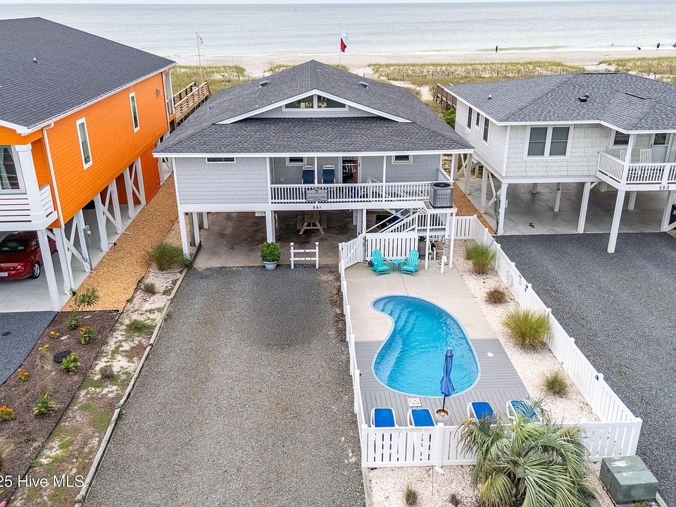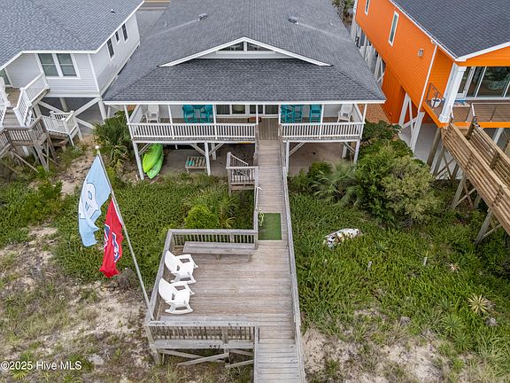 Welcome to your dream coastal getaway in one of the most desirable areas of Holden Beach. This beautifully remodeled 4-bedroom, 3-bathroom oceanfront home combines modern beachy charm with exceptional comfort and functionality—perfect as a private retreat or a high-performing vacation rental. Step outside onto your private oceanfront boardwalk and sink your toes into the sand in seconds, or take in the breathtaking ocean views from your covered beachfront porch, ideal for morning coffee, sunset cocktails, and everything in between. Inside, the open-concept living area flows seamlessly into an updated kitchen featuring granite countertops, stainless steel appliances, and stylish finishes. Most of this home has been thoughtfully upgraded since 2019, from the furnishings to the fixtures, giving it a fresh, modern beach vibe throughout. After a day at the beach, relax in your private saltwater pool, tucked away behind a privacy fence on the street side for maximum seclusion. A second covered porch lets you enjoy the peaceful charm of the neighborhood and salt air breezes.