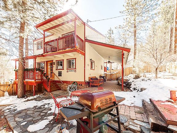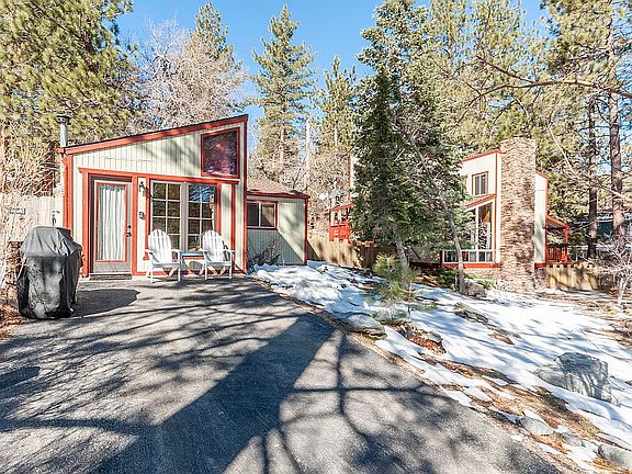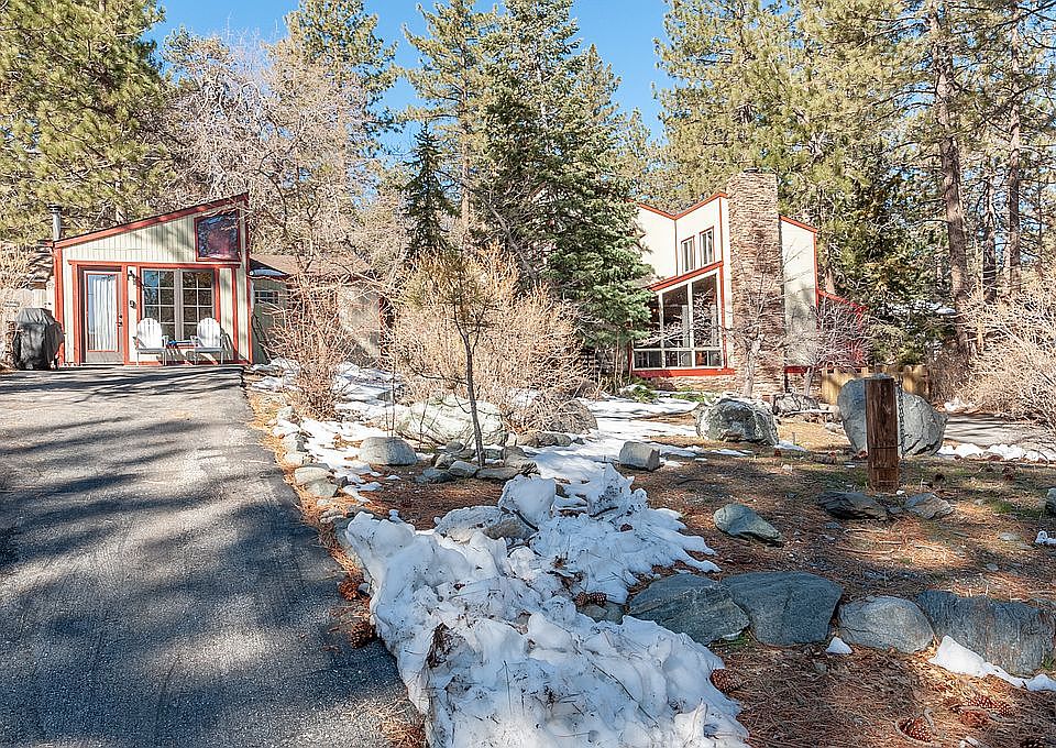 This Modern style home is 960 SqFt on a large 10,500 SqFt lot features 2 bedrooms, 1.5 bathrooms and an additional studio space separate from the home that showcases a kitchenette, bedroom, bathroom and sauna! Open concept kitchen with counter seating, opening up to the living room which has a beautiful fireplace. Off the living room is the dining area that has gorgeous windows bringing in natural light! Walk upstairs to the large master bedroom and enjoy the private balcony overlooking the backyard. Plenty of parking on the property with two drive ways. Fully fenced backyard with mature trees all around. Absolutely stunning home with so much to offer! Located in a cul-de-sac, perfect full time residence or vacation home. Don't miss out on the opportunity to own this one of a kind home!!