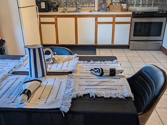 Apartment is fully furnished with very attractive, comfortable furniture, including coordinated chairs. The dinette seats 4.