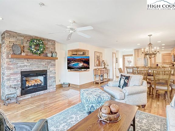 Fully renovated 2BR/2.5BA Timbers in Echota with spectacular views of Grandfather Mountain! This immaculate property is being offered fully furnished and has numerous updates including fresh paint, fresh polyurethane on all wooden trim, new carpet, new toilets and a new heat pump in 2022. Enjoy mountain living with hardwood floors in the main level, stacked stone gas fireplace, access to the covered deck and dining area with live edge kitchen table, chairs, and matching bar stools. The kitchen is fully equipped with stainless steel appliances, new granite countertops and tile backsplash. A convenient half bath is located on the main level along with the master suite which features a walk-in closet, secondary access to the deck and a stunning master bath with tile floors, granite countertops, updated hardware and spectacular tile shower. Downstairs you’ll find an additional living area with a 2nd gas fireplace, access to the lower deck, full size laundry room and brand-new Bassett sleeper sofa and loveseat. The guest bedroom is just off the living area and has ample storage and its own full bathroom with new tile floors, quartz bathroom vanity top and a tub/shower with tile accent.