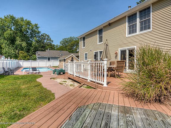 Up-to date Center Hall Colonial on expansive, fenced property in Jordan Park. Join Midstreams Property Owners Association for small annual fee (boat slips, fishing dock, boat ramp, playground). Bedroom and full bath on 1st floor. Hardwood and ceramic flooring throughout. Family Room has Fireplace and Slider to Multi-Level Deck. Heated Salt Water Pool and 16' X 8' Pool House. Outdoor Shower, Central Vac, Sprinklers on separate meter, front siding is Cedar Impressions...