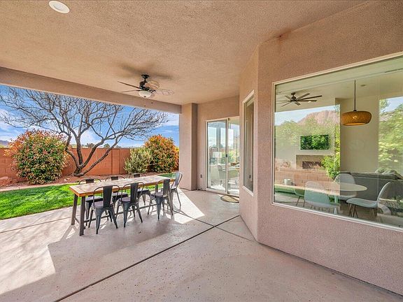 This stunning single level home boasts 4 generous size bedrooms, 2.5 bathroom as well as flex room that could be an office, den, or formal dining room depending on your needs. The home has been meticulously maintained. Key features include lots of large windows for natural light, fireplace in living room, vaulted ceilings, plenty of storage in kitchen, double vanities in primary bath and more! Located in the desirable Ivins community that offers breathtaking Red Mountain Views!