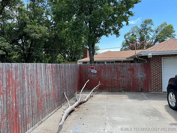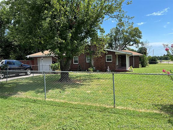 Memorial Drive Frontage, Corner Lot, Ranch style home on 0.5 acre. Tulsa airport renovated approx 2008. Additional parking in breezeway (3 cars) attached to 20x40 (approx) shop with office. It was a rock shop in the past. Great for business use. Shop has 50 amp plug for R.V. Great fixer-upper! House sold as is.