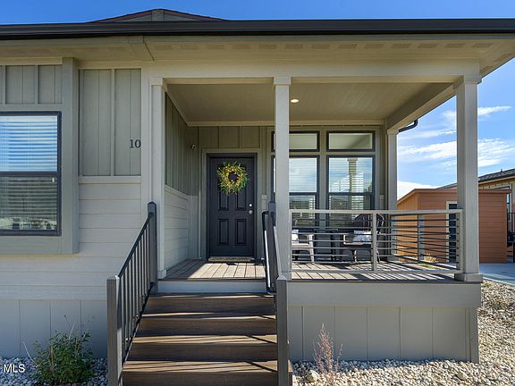 On a premium lot with views, space, and privacy, this 3-bedroom Smith Creek Crossing home features an open-concept layout with a stylish kitchen boasting stainless steel appliances, a farmhouse sink, and ample storage, as well as a bright and sunny dining space. The primary bedroom features an en-suite bathroom with double sinks, while two additional bedrooms and a bonus room share a full bathroom. Enjoy a front porch perfect for morning coffee and a back porch overlooking the willows. Community amenities include a clubhouse, outdoor hot tub, fitness room, and dog park—all just minutes from downtown Granby. Land not included. HOA fee listed includes monthly lot rent.