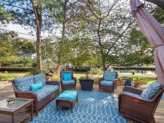 Beautiful deep waterfront home with bulkhead and boat dock and just a short distance to the North End beaches! Gorgeous brick ranch with a wonderful bright and open floor plan featuring a large chefs kitchen, a glass enclosed sunroom, lovely primary suite with new luxurious bathroom, spacious living areas, custom moldings throughout, built in bookshelves, gas fireplace and loads of updates including a new roof and new 18 Seer HVAC. Multiple decks and patios overlooking the water, beautiful mature landscaping and a side load garage all compliment this amazing home