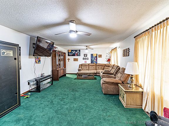 Outside, the property offers a beautiful oversized backyard, a garden shed, a shop with an overhead door, and covered parking in addition to the two-car attached garage. Its prime location places you close to the park, golf course, hospital, and city lake, while Tulsa is just a short 30-minute drive away.