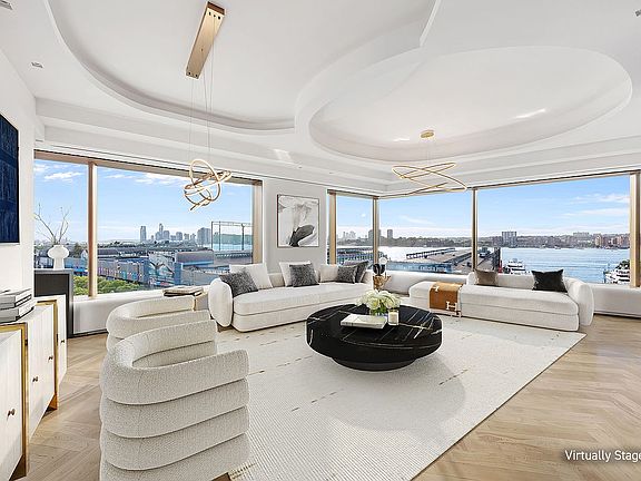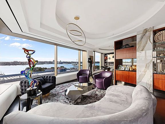 Experience New York living at its finest in the exquisitely chic Residence 7B, completely reimagined by renowned designer Pepe Calderin. This stunning, sun-filled convertible 3-bedroom, 2.5-bath home spans an impressive 2,425 sqft and boasts breathtaking views of the Hudson River and the Statue of Liberty, thanks to sweeping walls of glass that invite natural light to pour in.