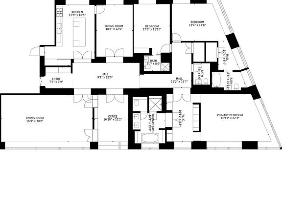 IMMACULATE GORGEOUS LUXURY 3 BED, 3.5 BATH SPACIOUS HOME WITH LIBRARY CLOSE TO 4,000 SQ FT OF LIVING SPACE IN WEST CHELSEA. PLEASE EMAIL FOR APPOINTMENT. A private elevator opens to a majestic foyer with cove lighting and a gallery that leads you to the grand living room with south facing windows, French inspired oak herringbone floors and an adjacent library with 11-foot ceilings throughout. Interiors designed by Foster + Partners include a kitchen by Molteni with top of the line appliances including a Gaggenau 5-burner stove, a Miele integrated coffee machine, warming drawers and a Subzero refrigerator surrounded with Blanco de Macael marble countertops and stained oak cabinetry. The corner primary bedroom with direct city and river views features a fully finished walk in closet with extensive custom millwork by Foster + Partners, and grand double doors that lead to the luxurious master bathroom. The primary bath is complete with radiant heated Luna Black granite floors, custom Corian vanity with integrated lighting, and a separate enclosed shower and water closet with custom designed floor to ceiling translucent glass doors. Two additional large bedrooms both have en-suite bathrooms with Travertino stone tile floors, custom designed cabinets, and Dornbracht fixtures. 551 West 21st St in one of the most distinguished buildings designed by Pritzker prize winner Foster + Partners. Overlooking The Hudson River in West Chelsea, the building features 34 foot double height lobby with grand chandelier, a private gated drive court, porter and valet service, state of the art fitness center with his and her spa, resident's lounge, Children's playroom. Additional amenities include a full time doorman, bike storage, live-in super and separate service entrance. On-site parking available at additional cost.