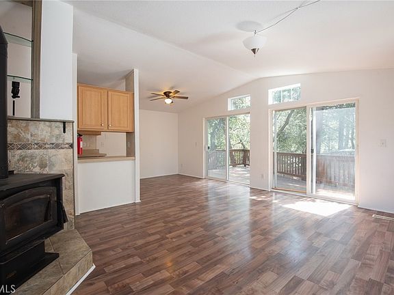 SELLER FINANCING AVAILABLE at 4.375%, inquire for details! Looking for a mountain retreat to call home, look no further! Located just minutes from Lake Gregory, this property features three bedrooms, two bathrooms and an open floorplan with tons of natural light. Built in 2008, notable features include laminate flooring, ceiling fans and dual pane windows. Situated on a corner lot, this property has plenty of outdoor space, including a custom exterior deck. The front yard includes two separate driveways to accommodate plenty of parking! The kitchen appliances are included in the sale: refrigerator, stove and microwave. Two exterior sheds also included. Possible Airbnb or short term vacation rental opportunity. Crestline offers visitors the opportunity to fish, kayak, paddle board, swim, hike, hang glide, shop and to sample local eateries!